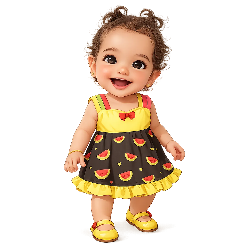Usa a foto da criança e a foto da roupa que ela vai usar na festa, o mascote fica IDÊNTICO ao look do dia!