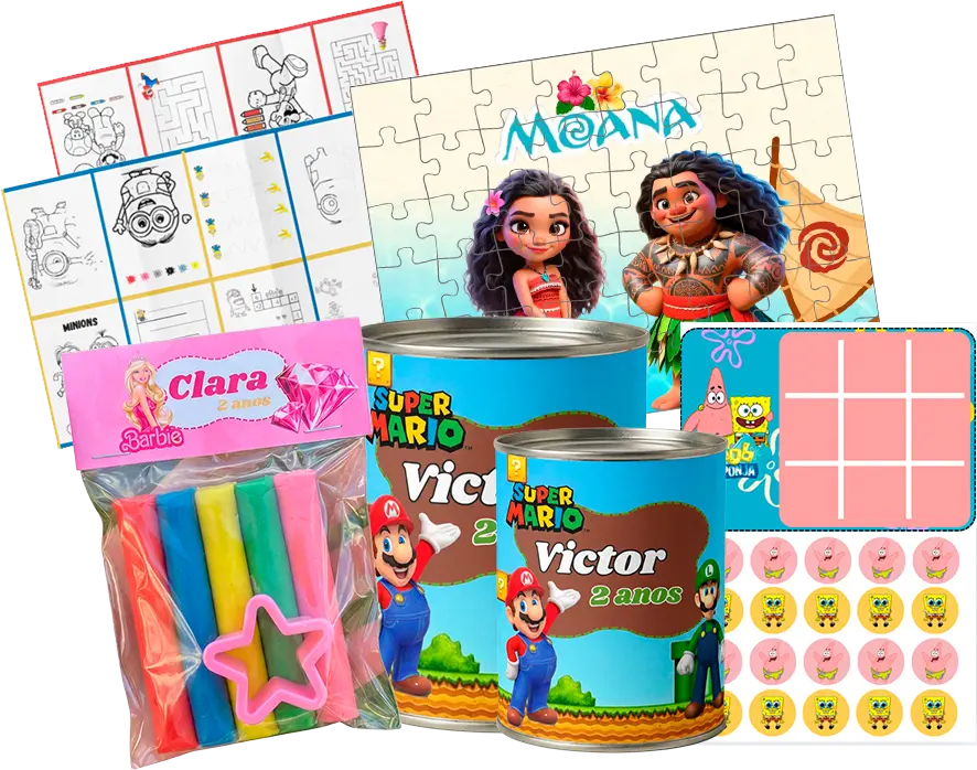 Chega de gastar R$15 por criança naquela lembrancinha que vai pro lixo no caminho de casa. Com esse combo, você imprime em casa por centavos e entrega algo que as crianças REALMENTE brincam.